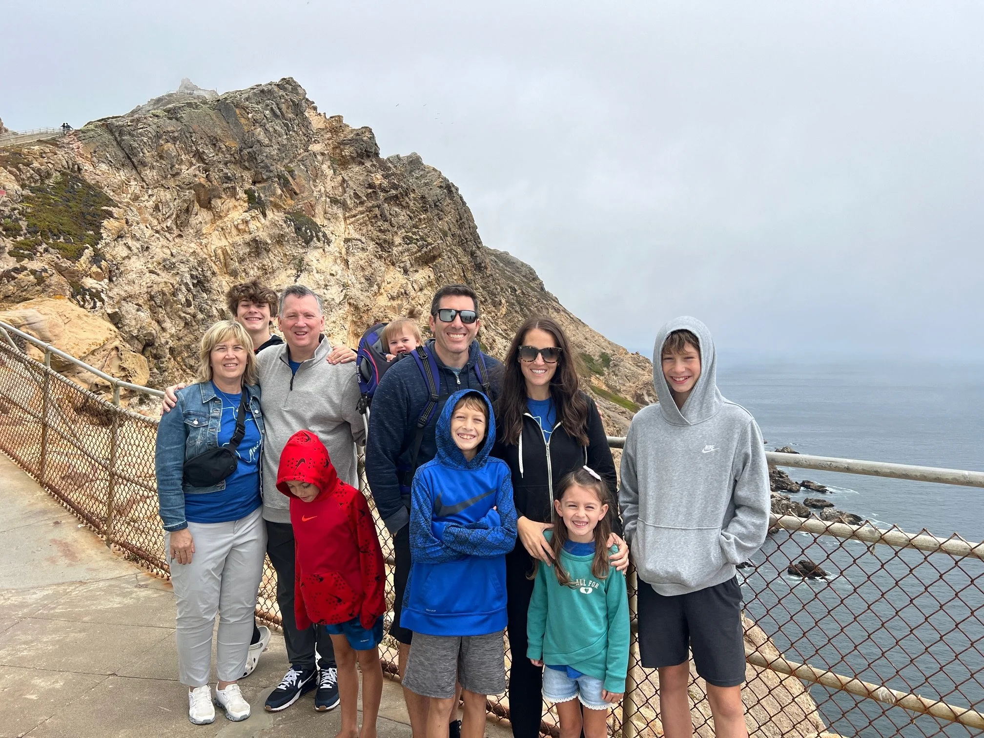 President and Sister Quinn with the Andersons - Dave, Katie, Mark, Caleb, Tyler, Luke, Lily, and Grace. Point Reyes California
