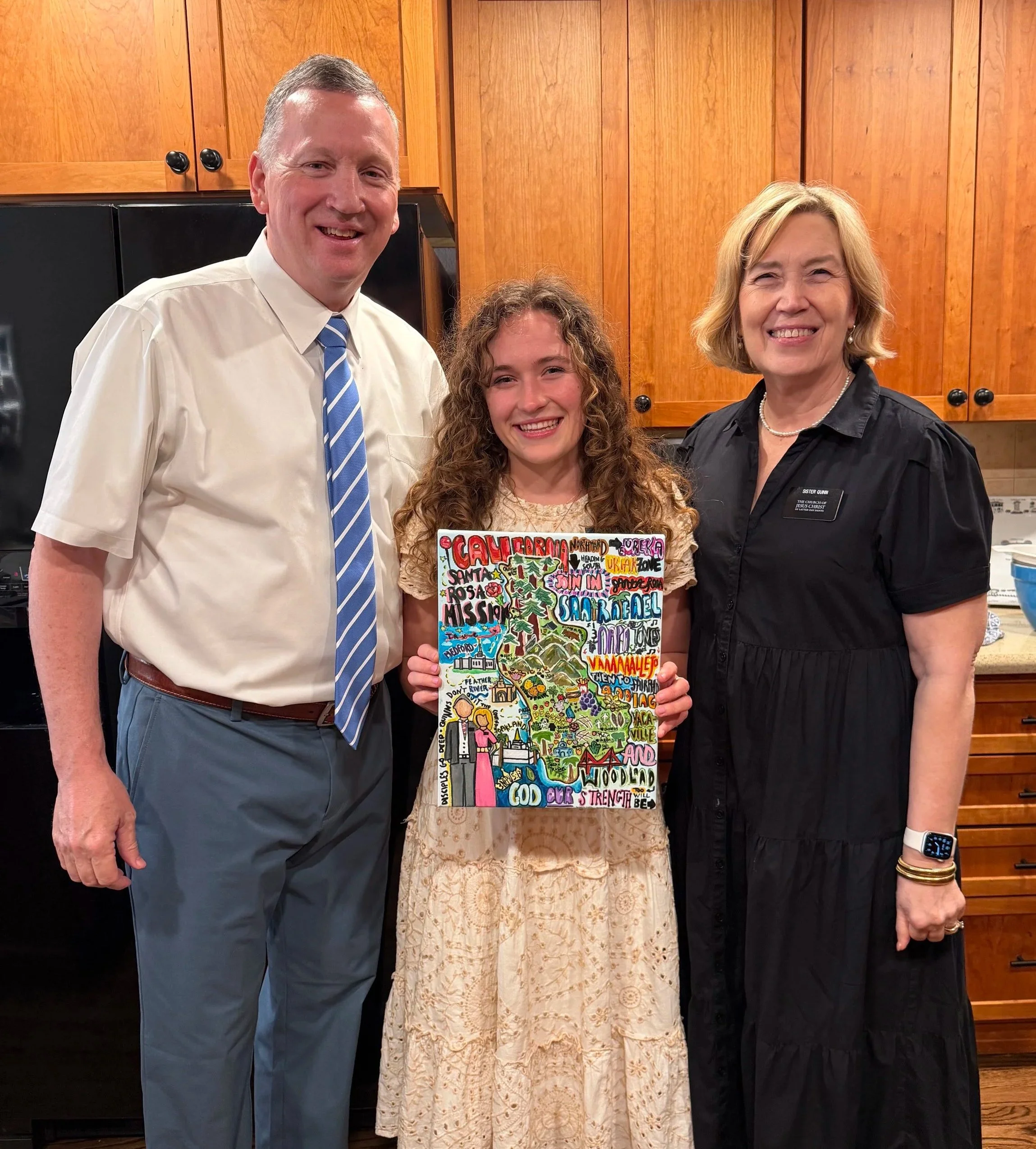 President and Sister Quinn with Sister Williams and her gift she painted for us
