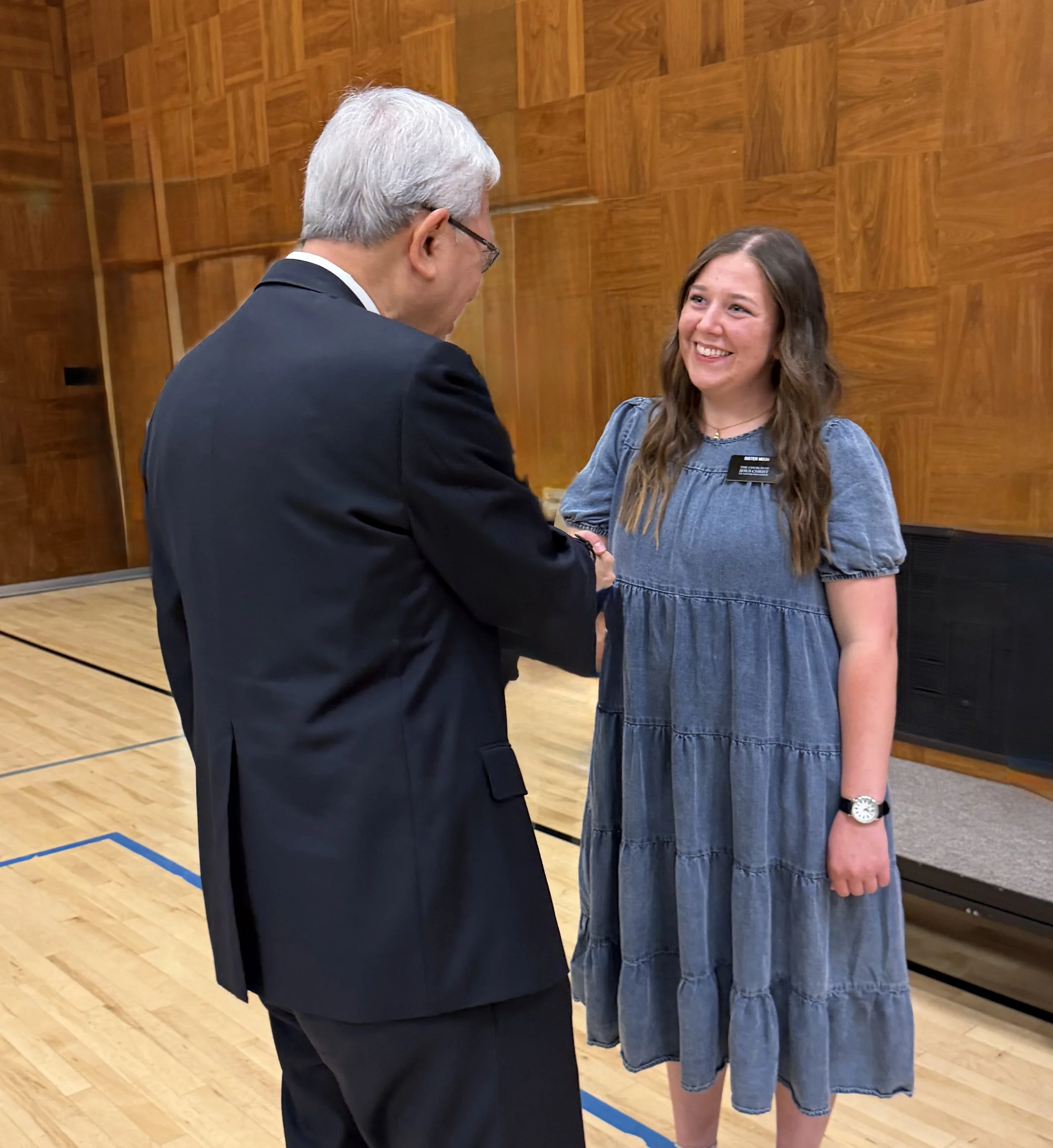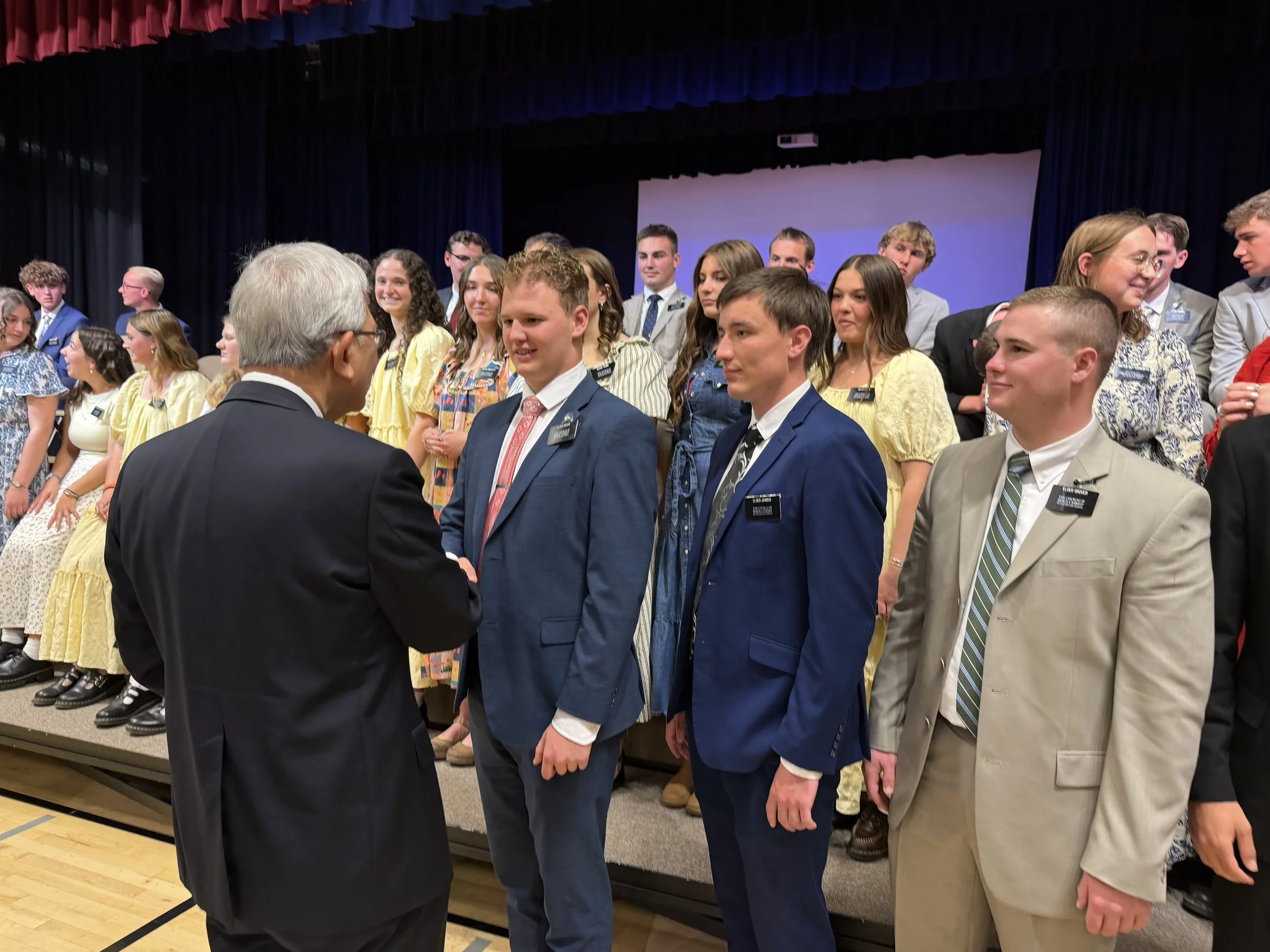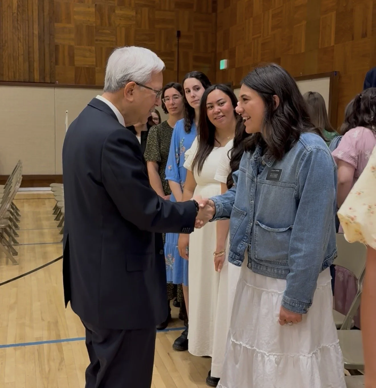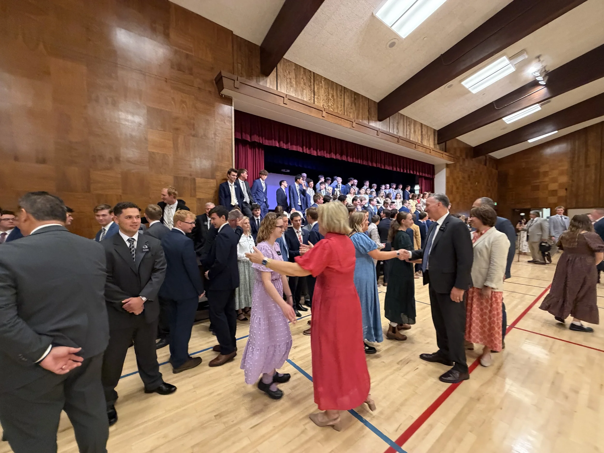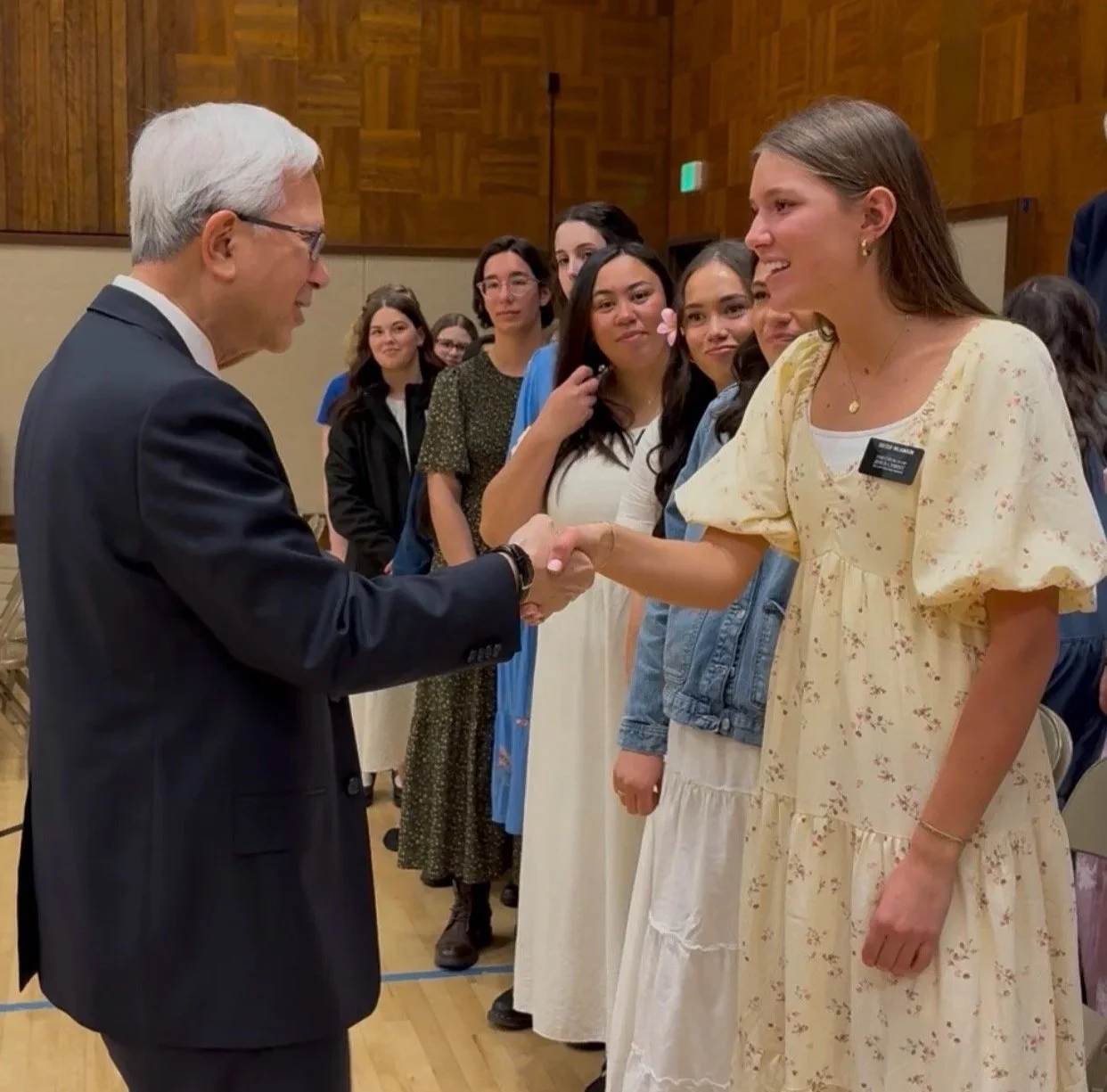 Waiting to shake hands with Elder Gong of the Quorum of Twelve Apostles