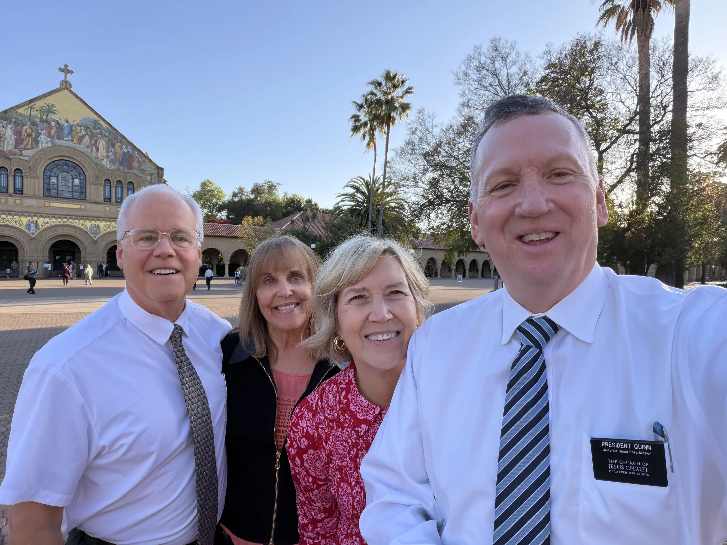 Elder & Sister Somers with Sister & President Quinn -Standford University Memorial Church on the main quad.