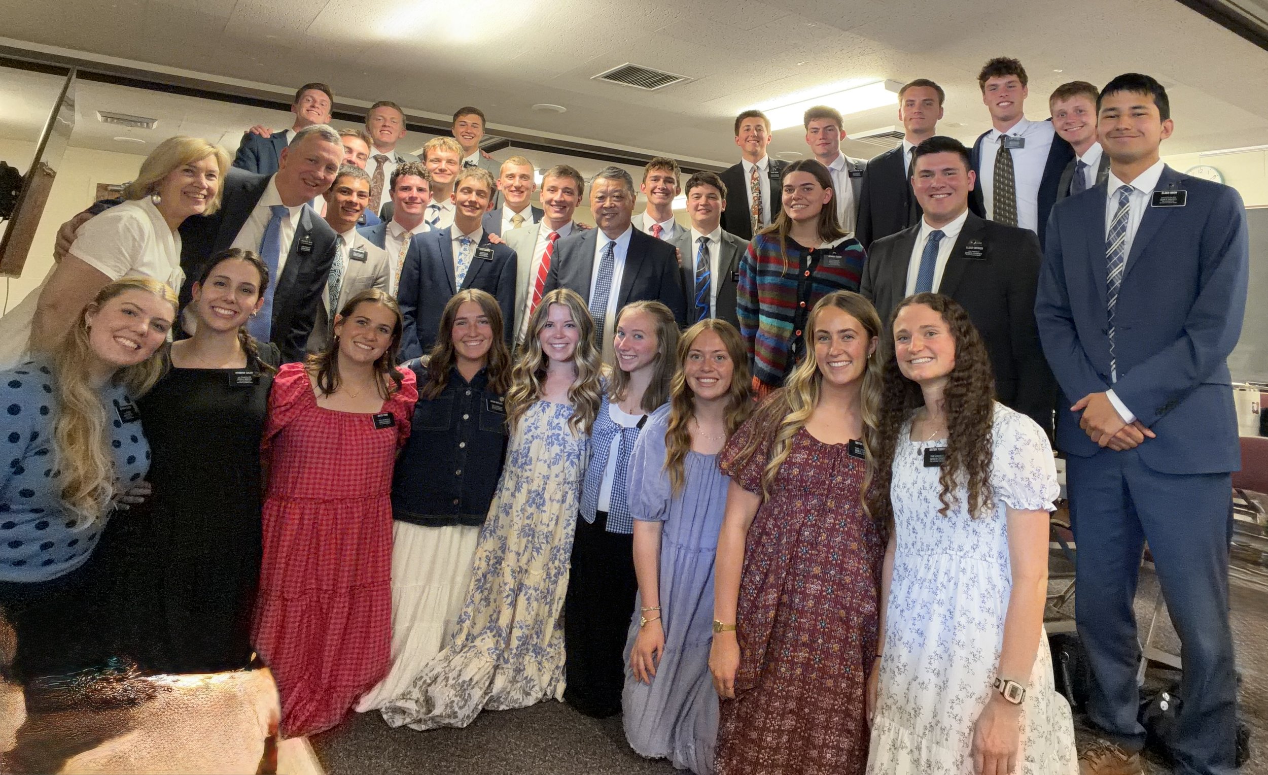 Our missionaries gathered early at the Peterson Lane building to practice “I Believe in Christ” and take a mission-wide photo. When Elder Gong walked in, we started singing and to our delight, he joined right in. After the photo he warmly shook every missionary’s hand, asking their name and where they were from. He was not rushed or in a hurry, even though we were running a little late. I loved that. He taught us and showed us how to minister to the one.