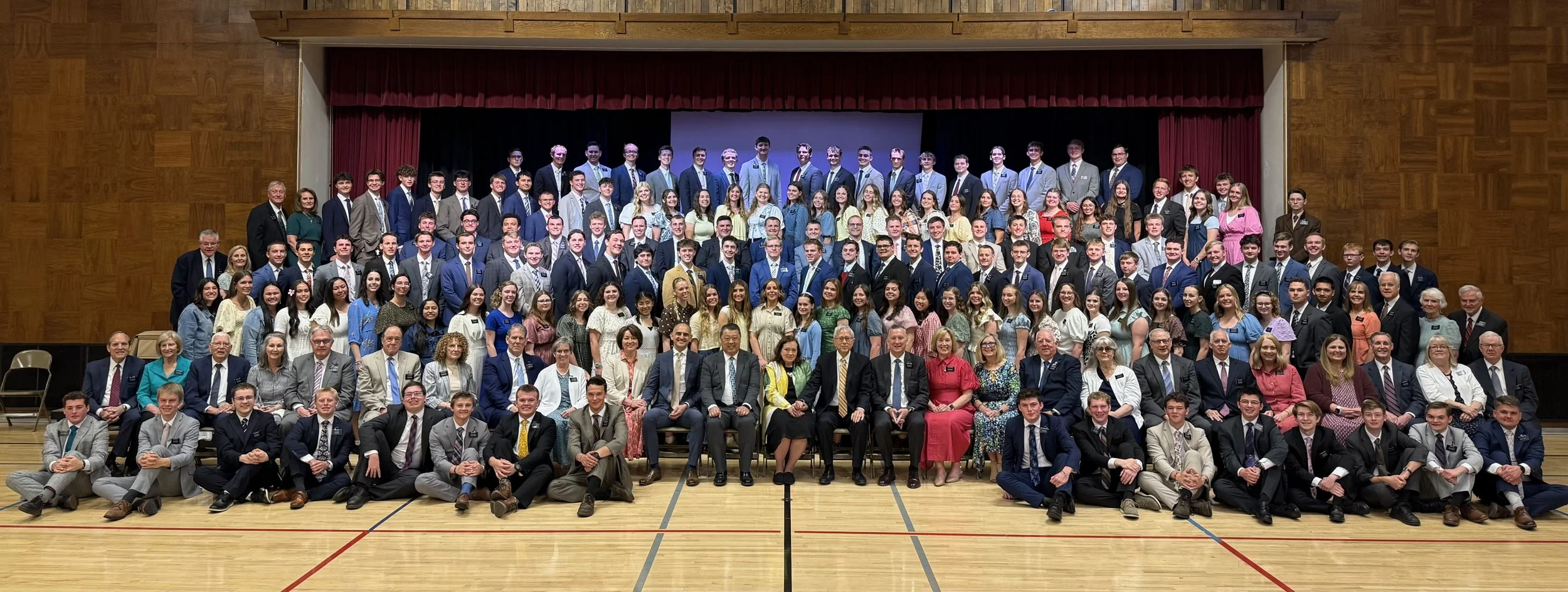 New missionaries; Sisters Miner-Ho, Melser, Fuller, The Quinns, The Davises, Sisters Merino, & Aston. Back row. Elders C. Crawford, Brogan, Righter, Benson, L. Crawford, and Sisters, Wilkinson, Wastlund, & Poff