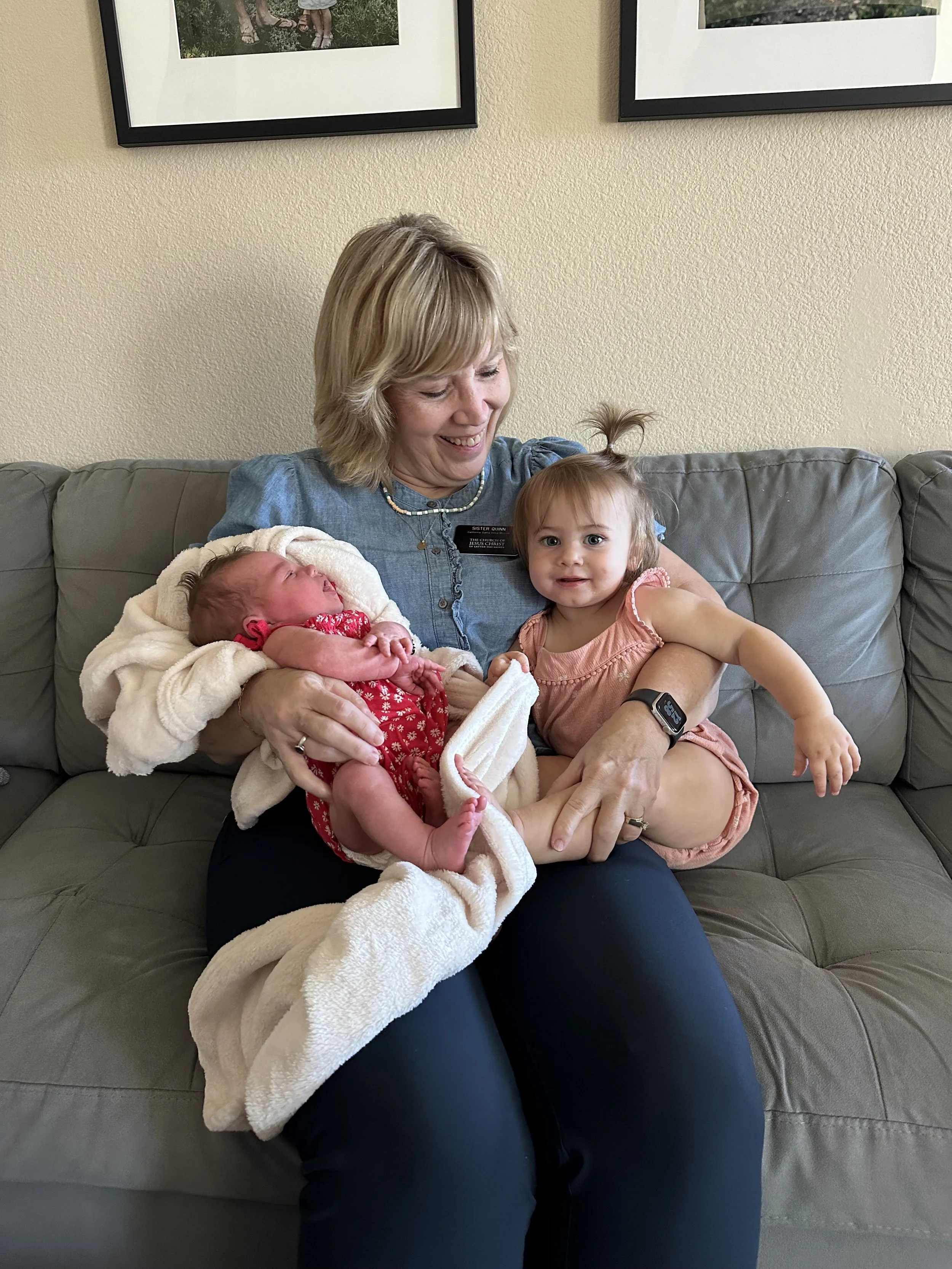 Grammy with Alice and Grace Anderson. We loved having Grace come to play and Mom Katie come to visit.