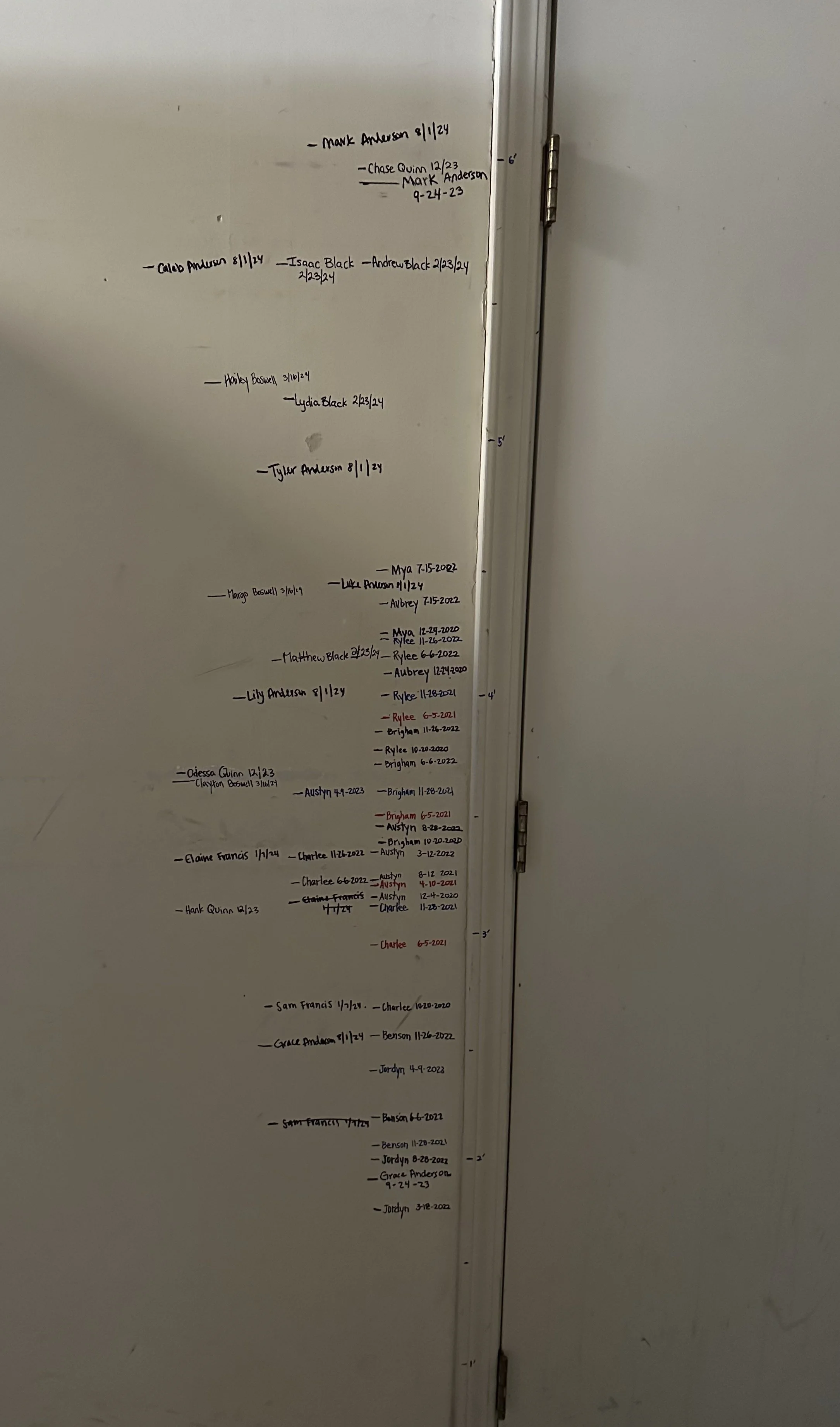 In our garage at the mission home, there is a wall with measurements of the height of grandchildren that the Puffers, the previous mission president and his wife, started. While visiting us our grandchildren saw this and asked to have their measurements recorded, too. It is fun to see how much each child grows over time and between visits!