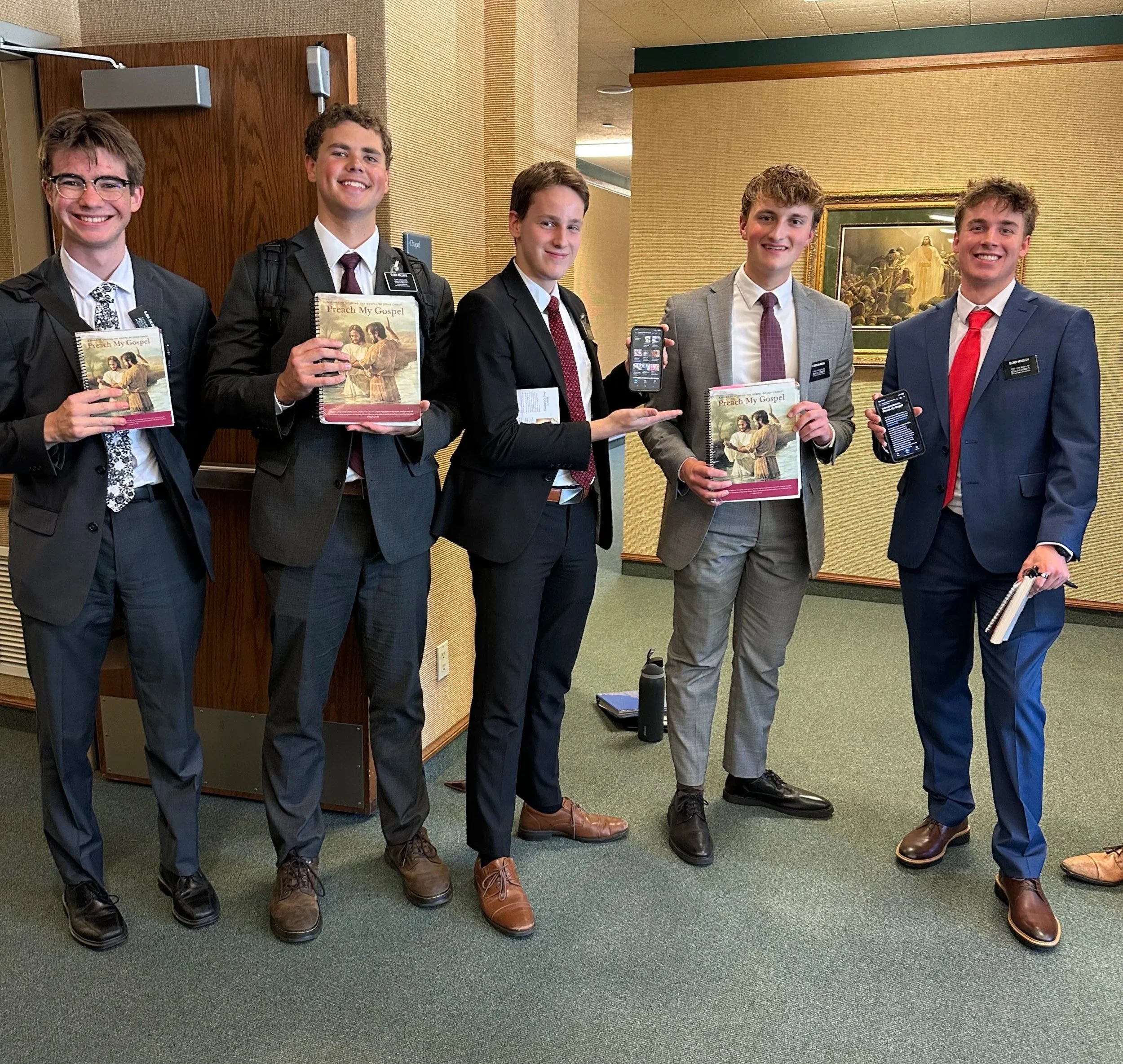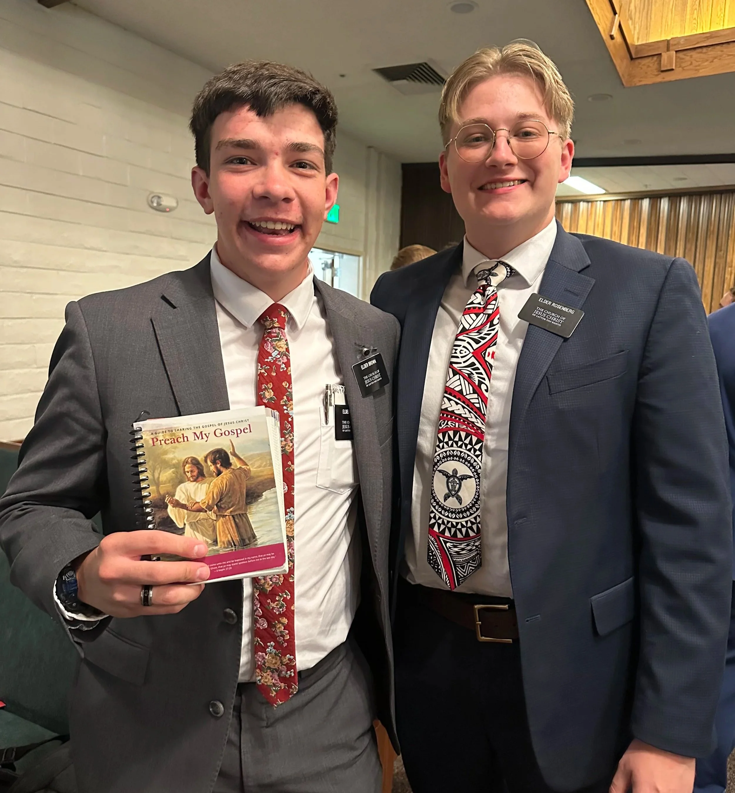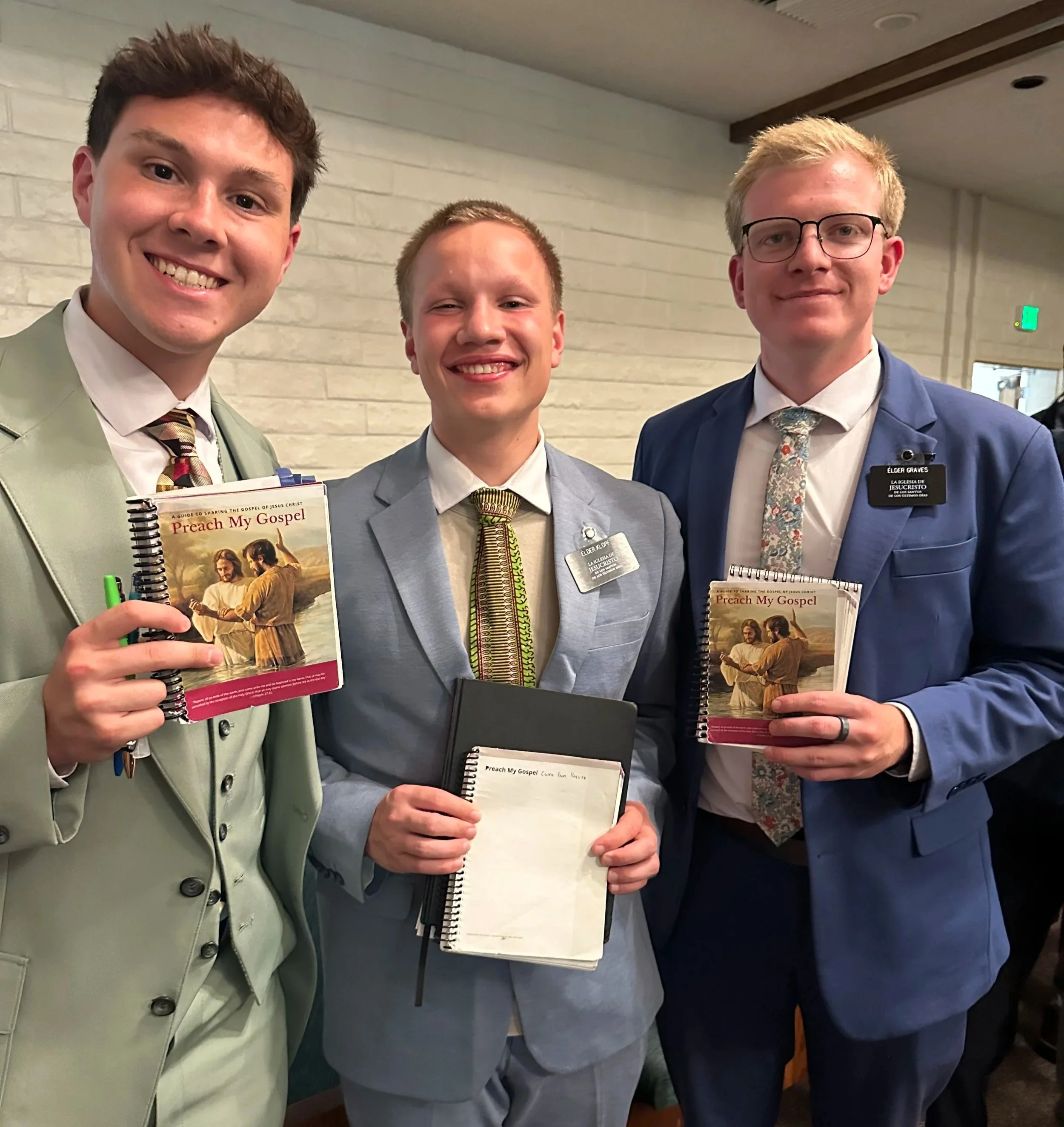 Elders Kaufman and Clark with their copies of “Preach My Gospel”