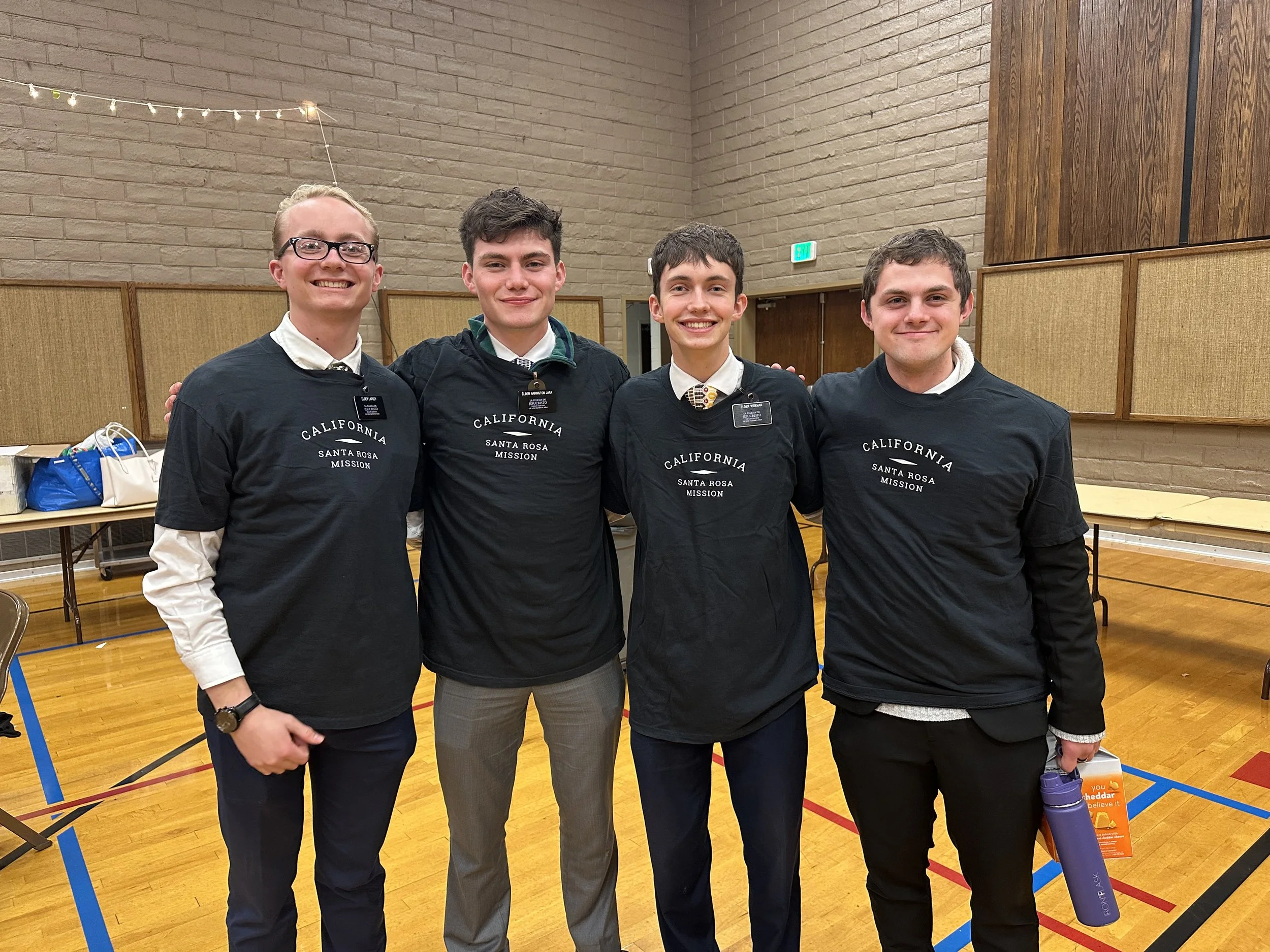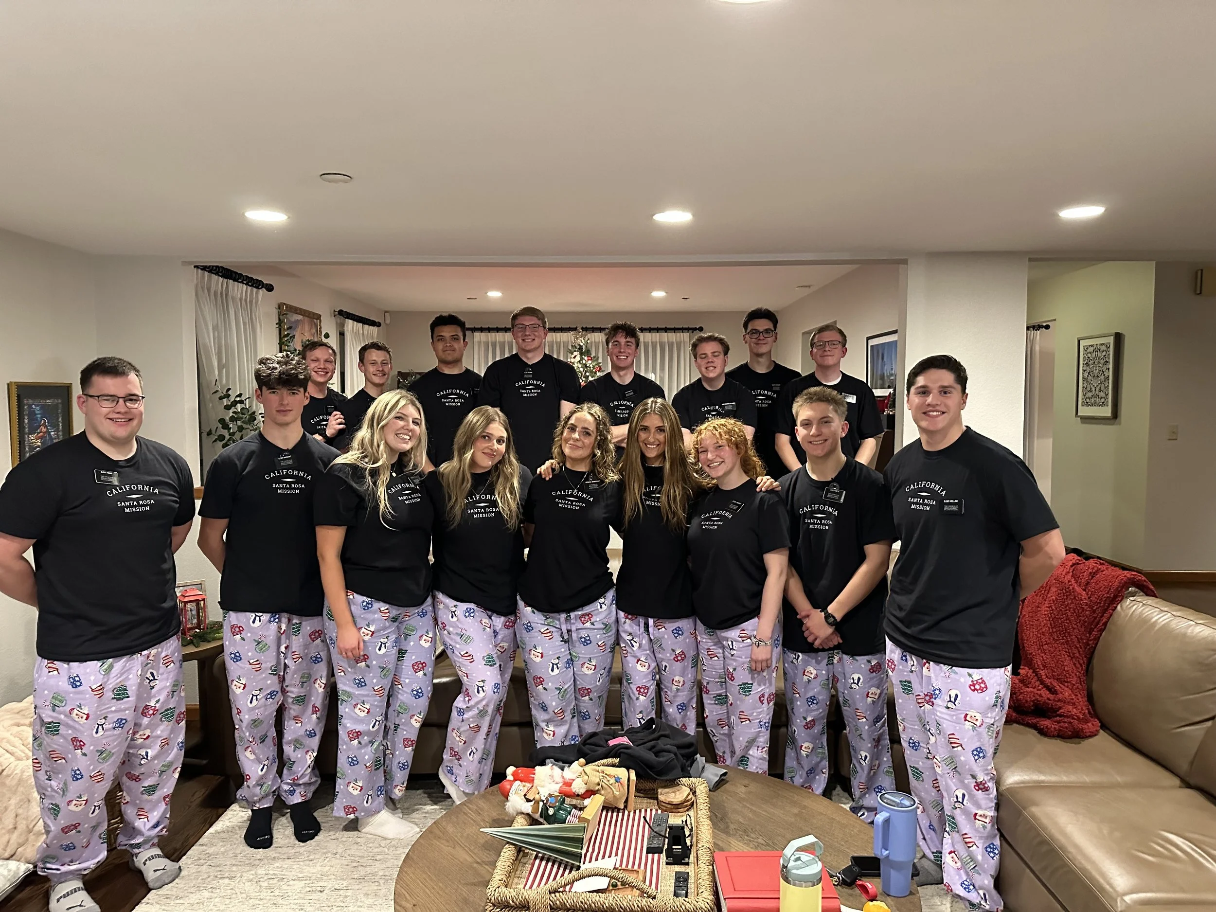 And the feeding of missionaries didn’t end there. We later welcomed the San Rafael and Santa Rosa Zones on Friday and Saturday for pizza and a Christmas movie. They wore their new t-shirts and we got some fun photos.