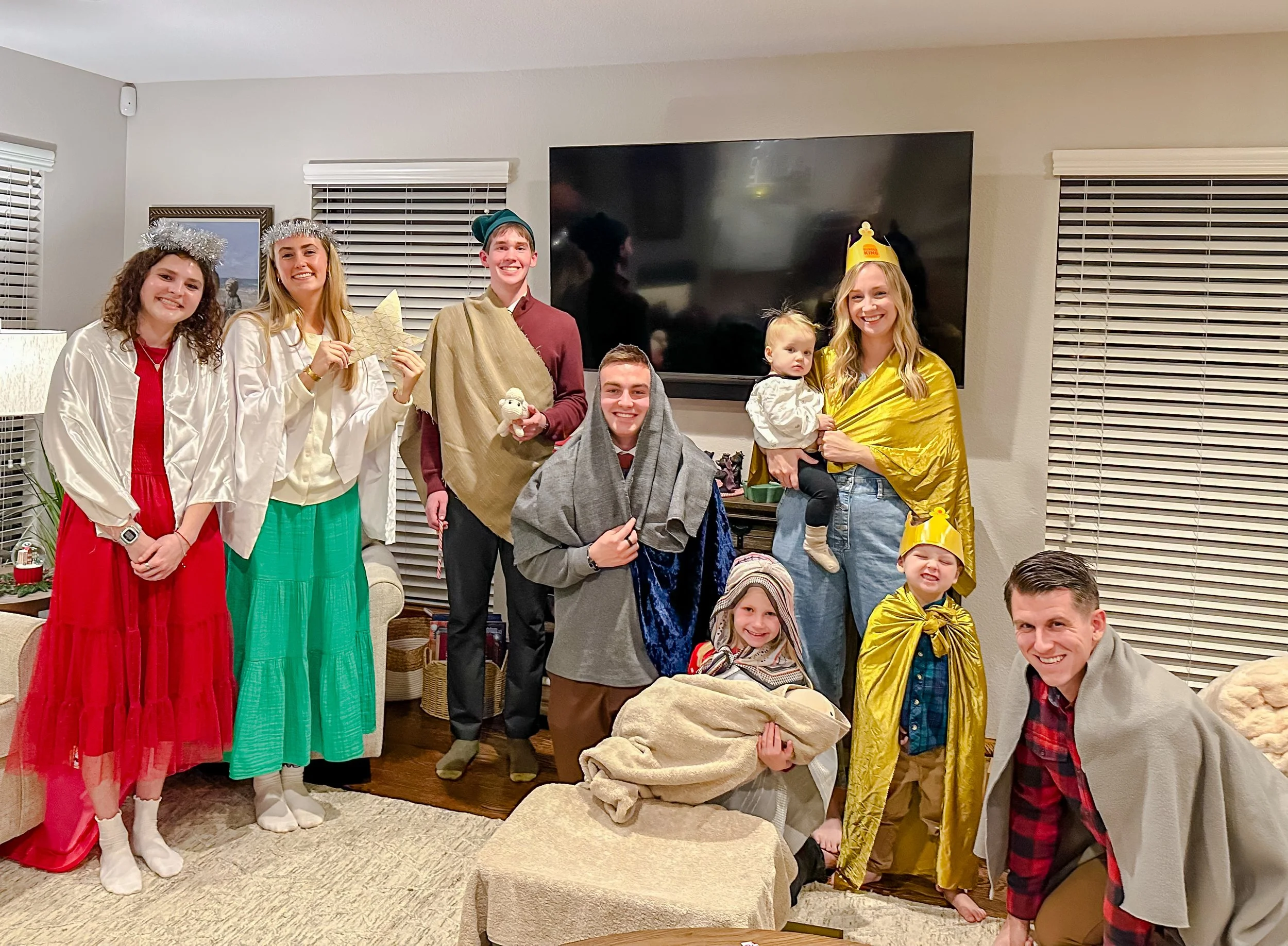 On Christmas Eve, we had the missionaries from the Rincon Valley Ward over, and it was a lot of fun. Everyone shared a talent and we acted out the Nativity in Luke 2 and sang by the Christmas tree.
