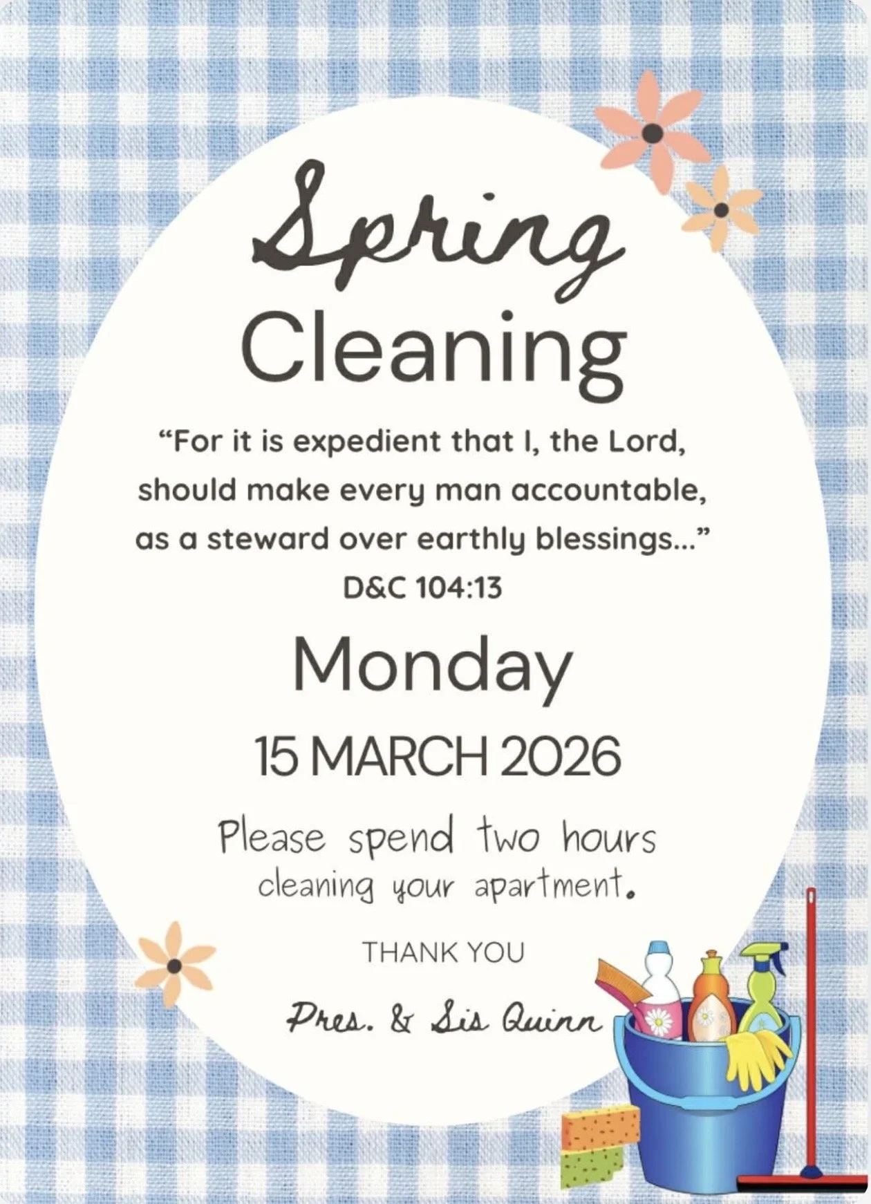 A mission wide cleaning day! Thank you Cawleys for your Zone Conference training!